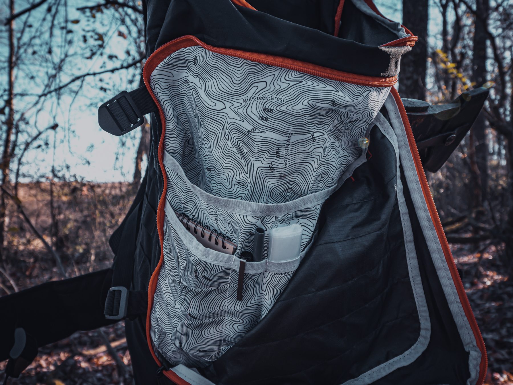 There were a couple of other small things I didn’t care for but they were really just personal preference things. There are a lot of great things to love about the 3VG Sovereign though. Such as the built-in rain cover, color pallet, laser-cut, and traditional molle, contrasting lighter interior with a kick-ass topo pattern, felt-lined top pocket, YKK zips, and more.