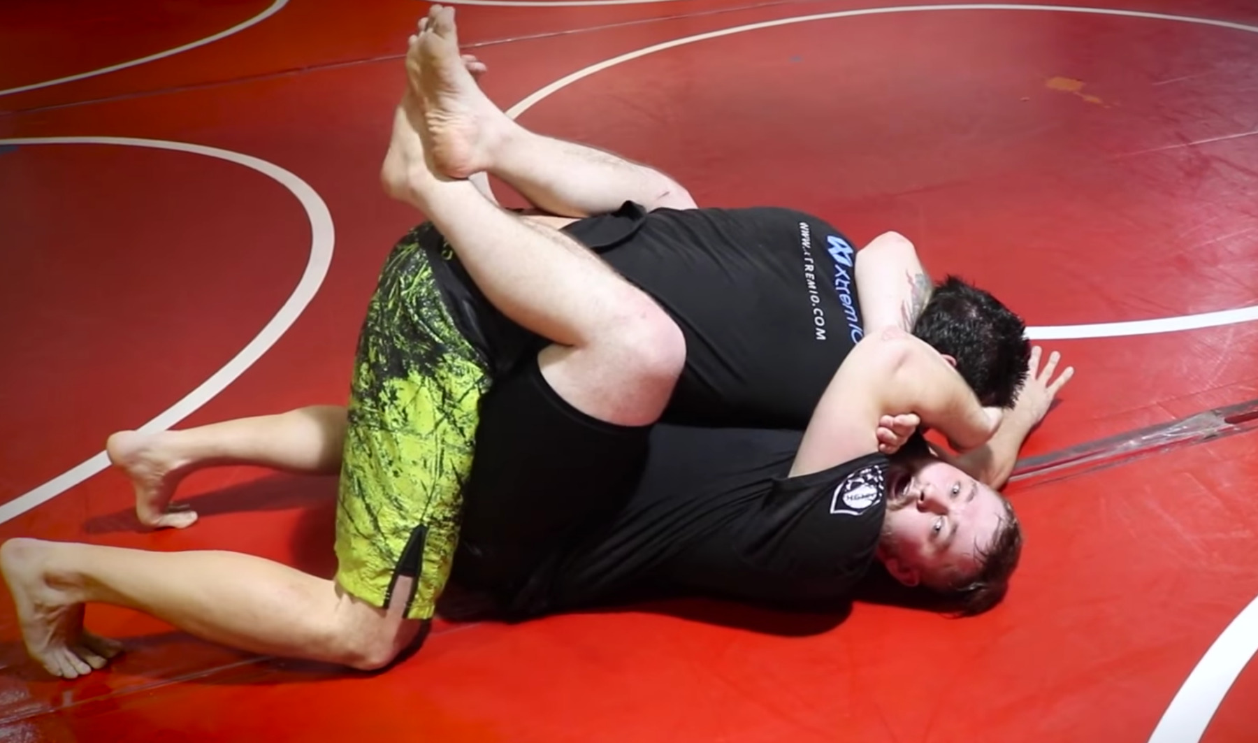 Wrapping your opposite side arm completely around the neck to meet the bicep of your attack side arm. From here you will wrap your attack side arm around and onto his head, forming somewhat of a reverse rear naked choke, only you are choking him out with his own arm. From this position you simply need to flex your muscles, and keep your head pinched tight to his arm so he can’t pull it out.